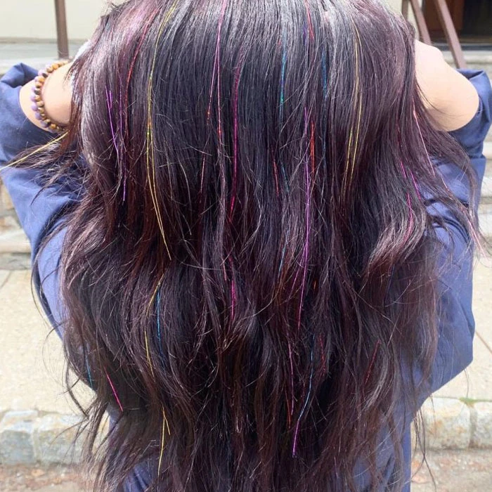 ◄ رنگ مورد علاقه برای لمه را انتخاب کنید و کمی بلندتر از موهایتان کنار بگذارید. اگر دوست دارید میتوانید شکل فانتزی بیشتری به موهایتان ببخشید و لمه مو هفت رنگ را روی موهایتان پیاده کنید.